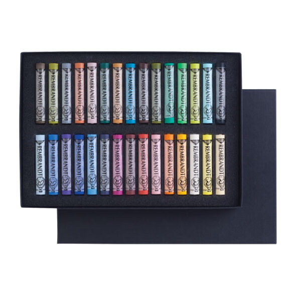 La Boîte de Pastels tendres, sélection portrait de REMBRANDT regroupe 30 couleurs différentes : 100.5 – 201.5 – 202.9 – 227.5 – 231.3 – 231.7 – 236.5 – 236.9 – 339.5 – 339.7 – 343.8 – 347.5 – 370.7 – 371.8 – 372.5 – 408.7 – 409.5 – 409.8 – 411.5 – 411.9 – 506.5 – 522.10 – 522.5 – 545.5 – 548.5 – 619.5 – 620.5 – 633.5 -700.5 -709.8.