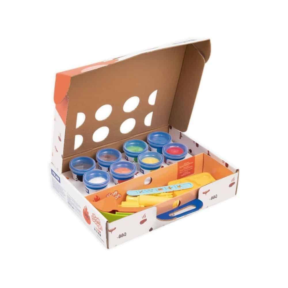 Le Coffret de pâtes à modeler thème BBQ Milan est parfait pour la créativité et le developpement de la motricité chez les enfants.