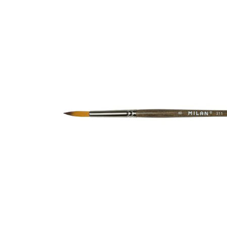 Le Pinceau synthétique rond série 311 MILAN est un pinceau à manche court en bois, vernis coloris noyer et virole en acier nickelé. Composition : poils synthétiques (filaments Ø 0,10 mm). Il convient à l’aquarelle et toutes les techniques à base d’eau.