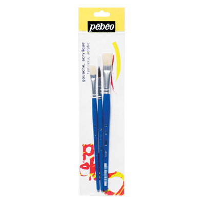 La Pochette de 3 pinceaux scolaires de PEBEO comprend 2 brosses soie beau blanc n°8 et n°12 et un pinceau rond poney n°4.