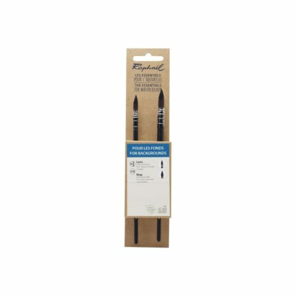 Cette Pochette de 2 pinceaux aquarelle Les Indispensables est composé deux pinceaux à lavis Softaqua, petit-gris imitation squirrel 805 n°3/0 et n°0.