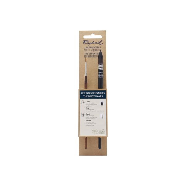 Le set “Les Indispensables” contient un pinceau lavis Softaqua n°2 pour les fonds et un pinceau rond Précision n°0 pour les détails.