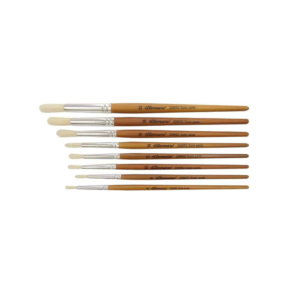 La Brosse ronde de la série 2289RO de LEONARD associe la soie de porc naturelle, réputée pour sa souplesse et sa capacité à retenir la peinture, à un manche court en bois teinté cèdre et une virole en aluminium qui assurent solidité et maniabilité. Conçue pour l’acrylique, la gouache ou le travail de matière, elle est particulièrement adaptée aux artistes et amateurs exigeants. Sa forme ronde offre un retour de pointe excellent, un tracé net, et facilite les lavis ou les aplats dynamiques. Cette brosse témoigne du savoir-faire français de Léonard.