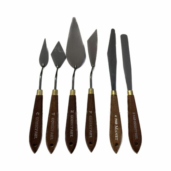 Les Couteaux à peindre CORECT’ART, reconnus pour leur haute qualité, sont dotés d’un manche en bois – en palissandre pour les modèles à palette – et d’une lame en acier robuste, conçue pour résister à l’usure et à la corrosion sur tous types de supports, y compris l’acrylique. Leur entretien est simple : un nettoyage à l’eau et au savon suffit.