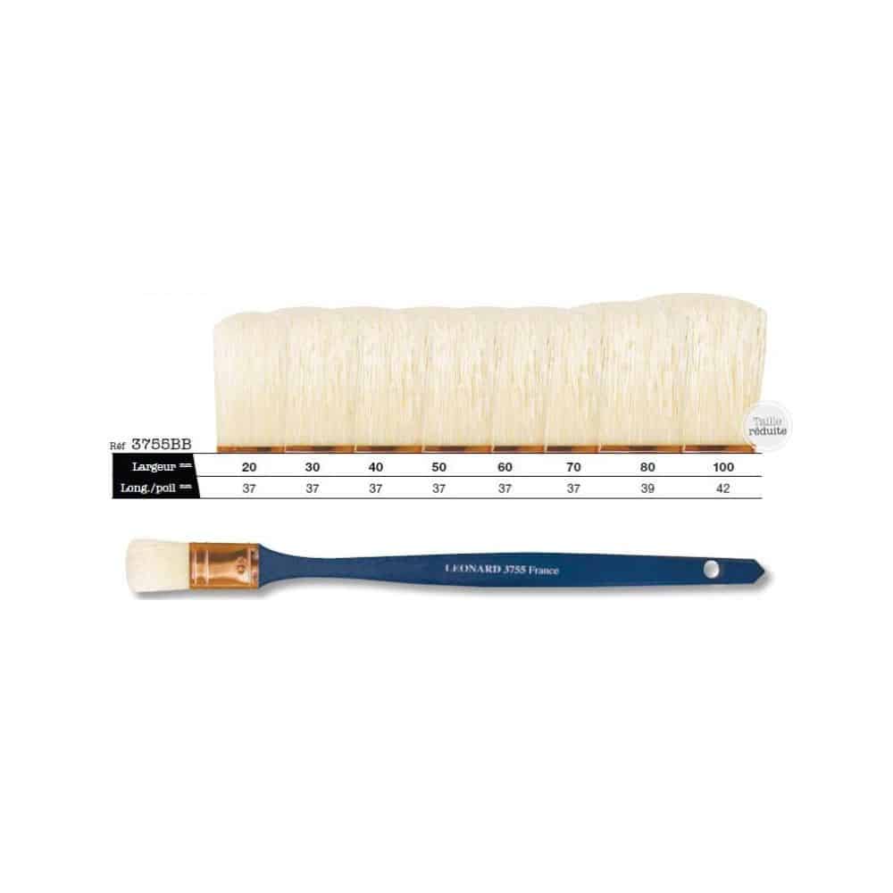 Découvrez le Spalter en soies beau-blanc LEONARD, idéal pour appliquer des fonds avec élégance. Ce pinceau plat, doté d’un bout bombé, permet une couverture uniforme et fluide sur de grandes surfaces. Sa conception ergonomique facilite le travail de peinture, que ce soit pour des aplats ou pour des détails plus fins.