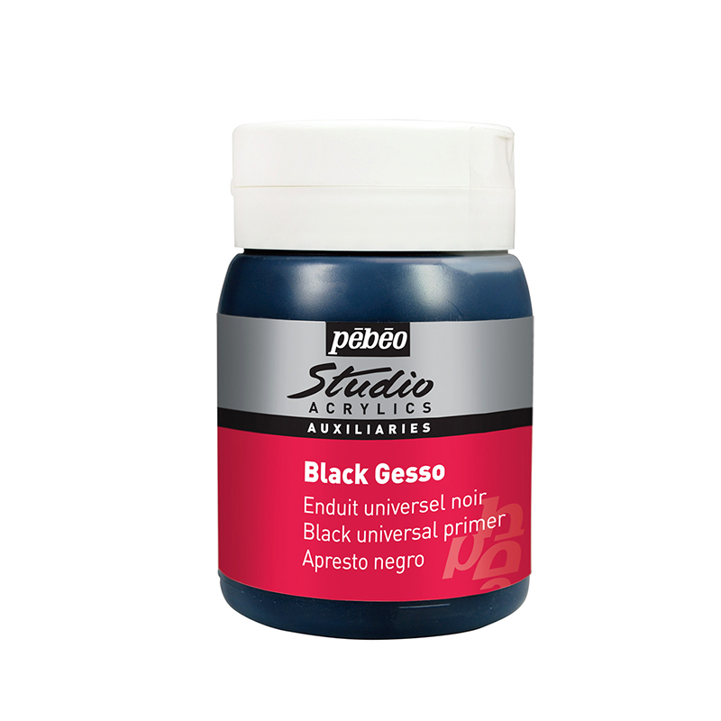 Il existe en 2 couleurs : Gesso Studio blanc et Gesso Studio Noir. Il peut être mélangé au Gesso blanc pour obtenir des sous couches en nuances de gris.