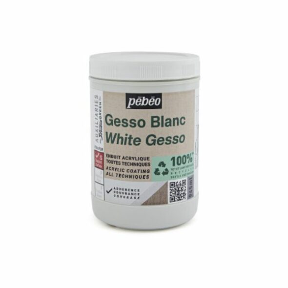 Le Gesso blanc est un apprêt universel, blanc couvrant et adhérent, utilisé pour la préparation des supports à peindre tels que les toiles, le carton, le bois, … Sa surface mate permet d’améliorer l’accroche des couches de peinture acryliques ou à l’huile, et s’applique sur une surface propre et non grasse au pinceau, au couteau, au rouleau à peindre, … Un ponçage après application est possible et permet d’obtenir une surface parfaitement lisse.