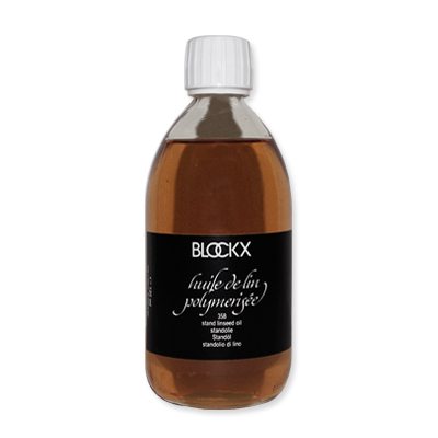 L’Huile de lin polymérisée BLOCKX est épaisse et visqueuse. Cuite sans oxyde métallique, elle apporte de l’onctuosité à la pâte. On l’utilise notamment pour arrondir la touche. Après séchage, le film formé ne jaunit pas et est très résistant.