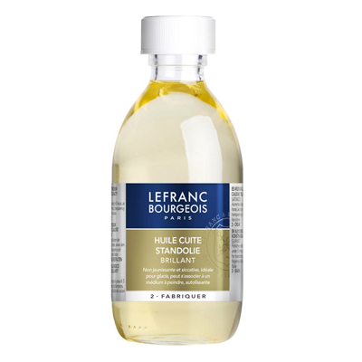 L’Huile cuite standolie de LEFRANC BOURGEOIS, est élaborée sans oxyde métallique. Elle apporte de l’onctuosité à la pâte et est utile pour une écriture picturale de type impressionniste (pour arrondir la touche). Elle est idéale pour les glacis avec une légère dilution à l’essence.