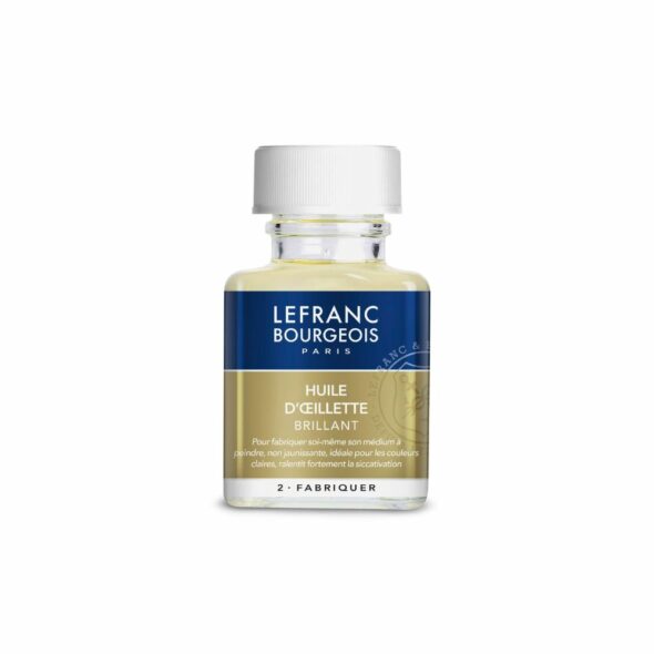 Idéale pour fabriquer votre propre médium à peindre, l’huile d’œillette ne jaunit pas, se combine parfaitement avec les couleurs claires et ralentit significativement le séchage.