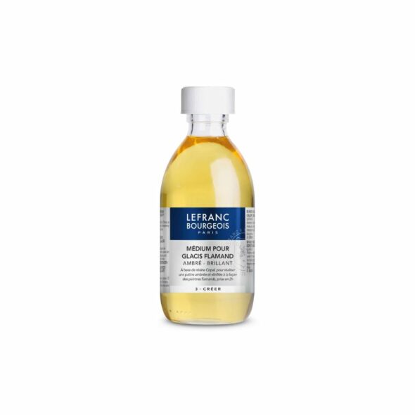 Peignez des patines ambrées et vitrifiées dignes des maîtres flamands avec le Médium pour glacis flamand LEFRANC BOURGEOIS. Spécialement conçu pour la peinture à l’huile, ce médium intensifie la brillance des couleurs tout en séchant avec un fini transparent et éclatant. Composé de résine de copal, il réduit le temps de séchage de votre peinture à seulement deux heures. Parfait pour les pigments foncés, il ajoute de la luminosité à vos œuvres. Ce médium se dilue avec de l’essence minérale sans odeur.