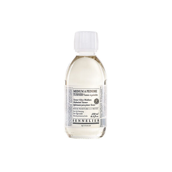 Le Médium à peindre Turner SENNELIER est médium, à base de gomme Dammar (résine naturelle), prêt à l’emploi qui peut s’utiliser tout au long de la réalisation d’une peinture. Il se mélange aux couleurs à l’huile en toutes proportions et favorise le travail dans le frais. Ce médium renforce la cohésion de la touche et accentue le brillant. Vous pouvez également l’utiliser pour les glacis. Il se dilue avec de l’essence de pétrole et de Térébenthine.