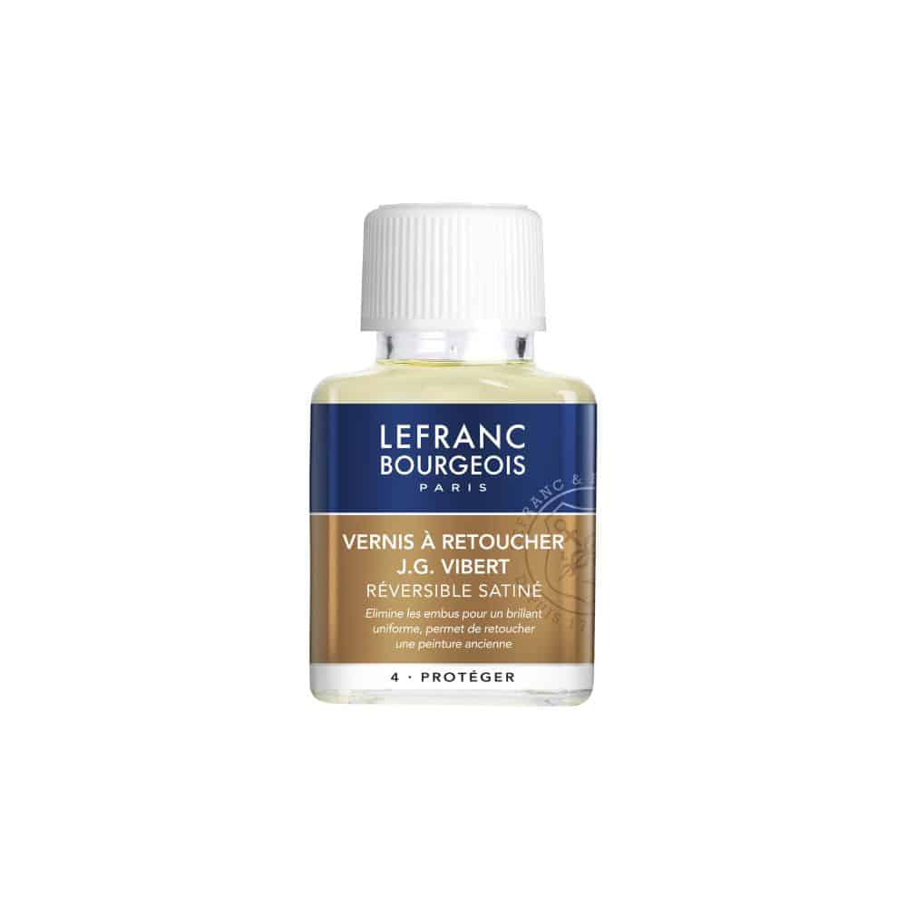 Retouchez les peintures anciennes, corrigez une partie de votre tableau, éliminez les embus et pré-vernissez votre œuvre finale avec le Vernis à retoucher J. G. Vibert LEFRANC BOURGEOIS. Ce vernis souple, incolore et non jaunissant, sèche avec une finition satinée. Grâce à sa composition en résine cétonique et acrylique, huile d’œillette et essence de pétrole minérale, il imprègne votre peinture sans la ramollir ni la durcir, fixant les couches anciennes et éliminant les embus. Idéal pour une protection temporaire, il permet l’application d’un vernis définitif dès 48 heures après séchage. Utilisez l’essence de pétrole minérale pour le diluer et le nettoyer.