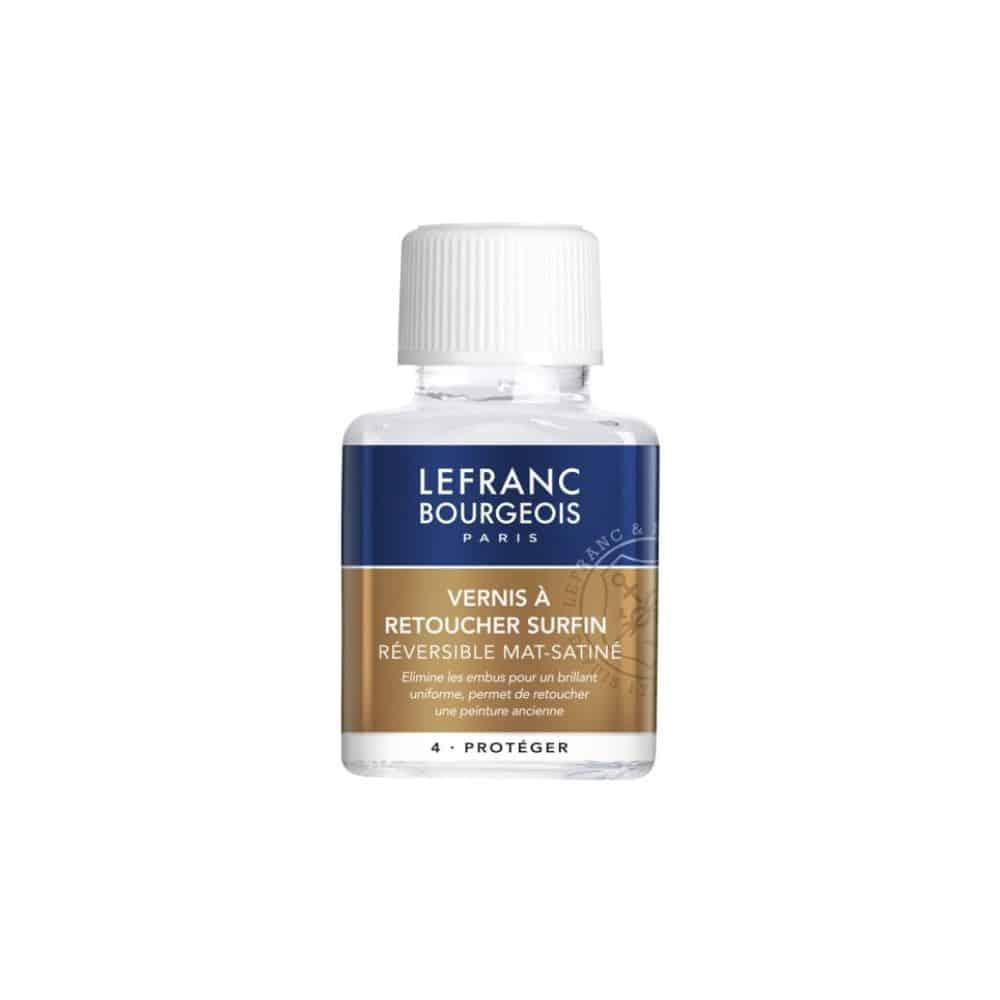 Retouchez des peintures anciennes et obtenez des finitions uniformes avec le Vernis à retoucher Surfin anti-UV mat-satiné LEFRANC BOURGEOIS. Conçu pour les peintures à l’huile, ce vernis temporaire est idéal pour éliminer les embus, corriger les coulures, retoucher des peintures anciennes et traiter de grandes surfaces. Il assure une parfaite souplesse dans la cohésion des couches superposées, offrant une luminosité uniforme et formant un film durable et délicat qui ne déteint pas sur votre travail. Naturellement incolore, il ne jaunit pas avec le temps. Ne l’appliquez jamais après le vernis final, car il sert de protection avant l’application d’un vernis définitif. S’applique au spalter. Utilisez l’essence de pétrole minérale pour le diluer et le nettoyer.