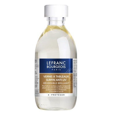 Souple et transparent, le Vernis surfin anti U.V. de LEFRANC BOURGEOIS peut être mélangé à un autre vernis pour lui atténuer sa brillance. Employé tel quel, sa facilité d’utilisation le rend compatible avec les peintures de grandes dimensions.