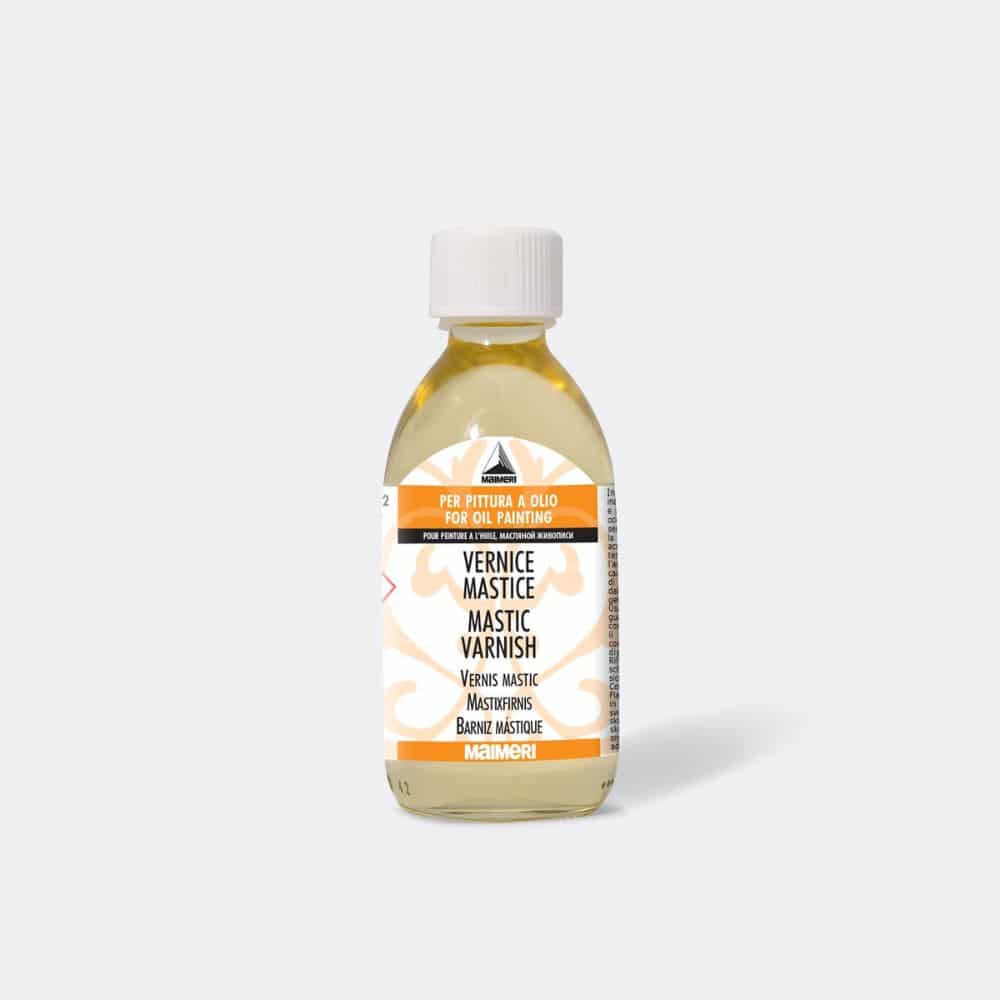 Le Vernis mastic MAIMERI est très souple et élastique, ce qui accentue considérablement la brillance de la peinture. Bien qu’elle ait tendance à jaunir avec le temps, ce produit est réversible avec de l’essence de térébenthine.