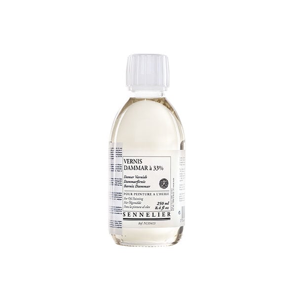 Le Vernis Dammar à 33% SENNELIER est composé de gomme Dammar pure en solution à 33% dans l’essence de pétrole. Il doit être utilisée comme base pour la fabrication de vernis ou de médiums. Il se dilue uniquement à essence de pétrole. Il n’est pas conseille d’utiliser le produit tel quel.