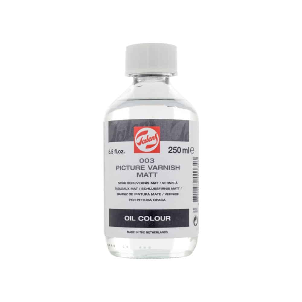 Le Vernis à Tableaux Mat de TALENS est un vernis final conçu pour protéger durablement les peintures à l’huile. Il forme une couche mate qui retarde le vieillissement de la peinture et ne jaunit pas avec le temps. À appliquer après un séchage complet de la peinture (environ 6 à 12 mois). Sèche en quelques heures. Peut être dilué ou retiré avec de l’essence de térébenthine ou de pétrole. Inflammable.