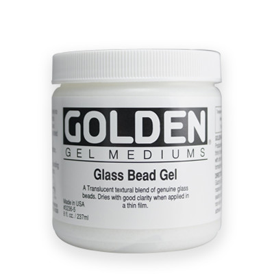 Le Gel Perles de Verre de GOLDEN ou Glass Bead Gel contient de véritables billes de verre transparentes. Ces billes créent des reflets uniques et offrent une profonde transparence. Plusieurs applications sont possibles.