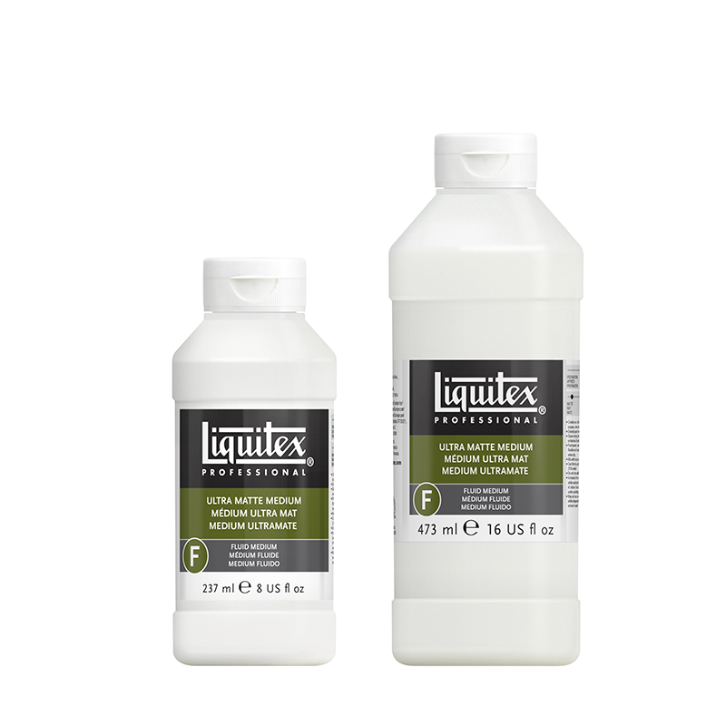 Le Médium ultra mat Liquitex permet d’obtenir un rendu très mat, opaque et sans reflet. Il maintient l’opacité des couleurs et augmente le volume de la peinture. Ce médium peut être mélangé à hauteur de 50% de la peinture sans éclaircir la couleur. Ce produit est conçu pour être utilisé avec des couleurs opaques où la transparence n’est pas désirée.