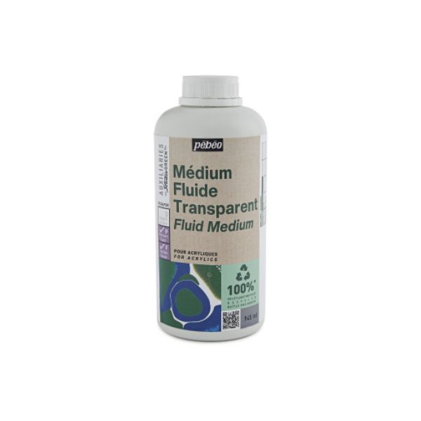 Le Médium fluide transparent est un médium acrylique plus fluide qu’un gel, aux multiples usages : seuls ou en mélange à la couleur, en toutes proportions et à tous les stades d’un travail. Ce médium, non jaunissant, augmente la transparence et fluidifie les couleurs afin d’obtenir la viscosité souhaitée sans appauvrir la peinture (contrairement à l’ajout d’eau).
