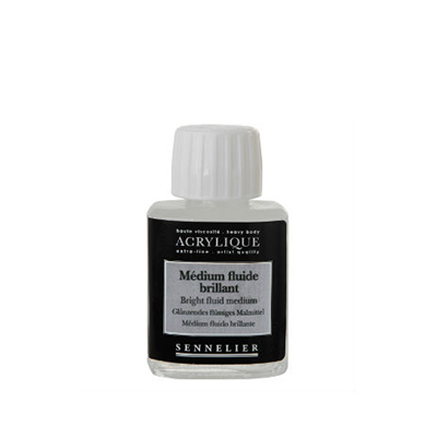 Le Médium fluide brillant de SENNELIER augmente la fluidité, la transparence mais aussi la brillance de la couleur. Il s’ajoute en toutes proportions à la peinture. Vous pouvez également le mélanger au médium fluide mat. La dilution se fait à l’eau. Il a également l’avantage de sécher rapidement et devient transparent et résistant à l’eau après séchage.