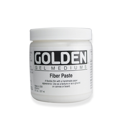 Lorsque la Pâte à fibres de GOLDEN ou encore Fiber Paste sèche, elle donne une surface flexible et rugueuse, soit l’apparence d’un papier fait à la main, idéale comme texture ou fond. Il peut être appliqué de plusieurs manières :