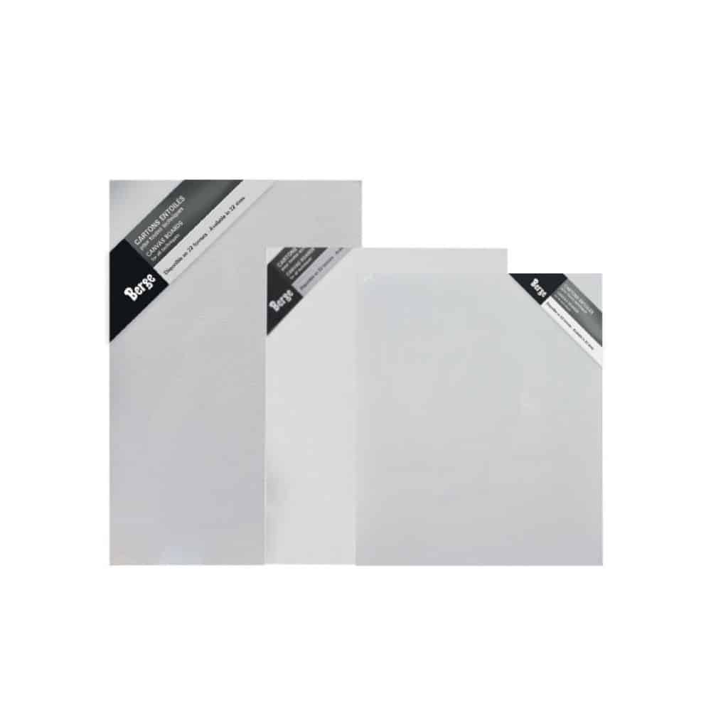 Le Carton entoilé BERGE en coton est adapté à toutes les techniques de peinture : huile, acrylique et gouache. Il est disponible dans les formats beaux-arts français Paysage et Figure, allant du P1 (F1) au P15 (F15). Ce carton rigide et stable est recouvert d’une toile en coton 100% au grain fin et régulier, enduite d’un apprêt universel blanc. La toile est fixée à l’arrière du carton, lequel est ensuite recouvert d’une feuille de papier.
