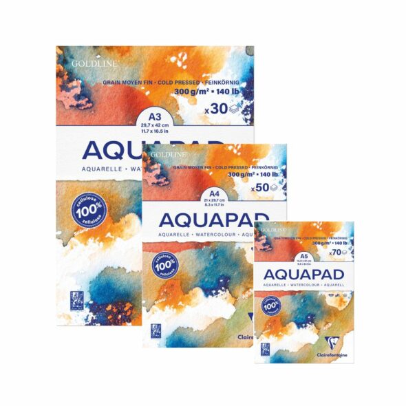 Le Papier aquarelle Goldline de CLAIREFONTAINE est fabriqué à partir de 100% de cellulose et offre une blancheur naturelle. Il est classé comme un papier de qualité étude, caractérisé par un grain moyen fin qui est plus prononcé sur l’une de ses faces. Cette texture nouvelle facilite l’application de diverses techniques artistiques et augmente sa polyvalence.