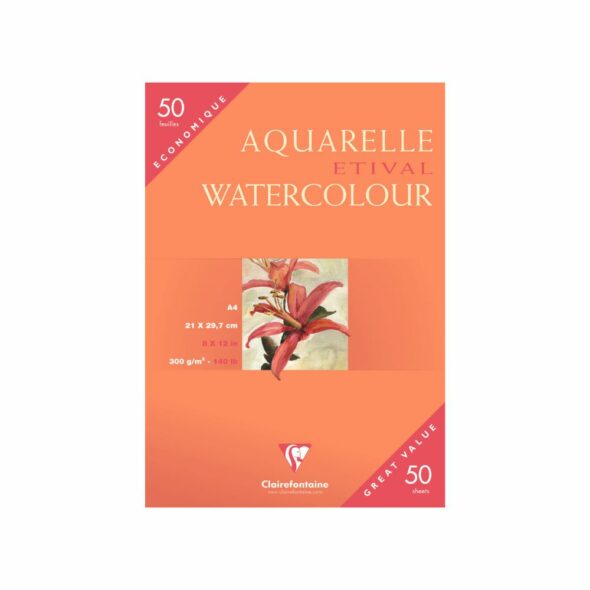 Le Papier aquarelle Etival de CLAIREFONTAINE est fabriqué à partir de 100% de cellulose, de qualité étude. Ce papier possède un grain fin et régulier pour une plus grande polyvalence.