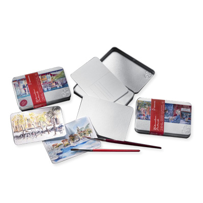 Le Coffret métal de cartes postales à peindre de HAHNEMÜHLE contient 30 feuilles à personnaliser.