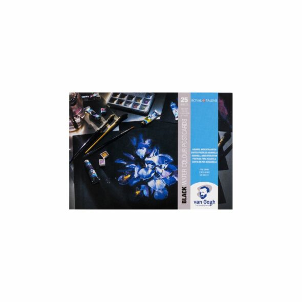 Le Papier noir VAN GOGH est idéal pour les interférences et les aquarelles métalliques. Le verso est imprimé comme une carte postale. Ce papier à aquarelle de 360 g/m² (140 lb), composé à 100 % de cellulose, présente une texture fine pressée à froid.