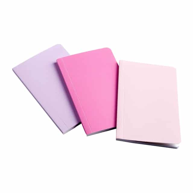 Chaque carnet arbore une jolie couleur – lilas, rose vif et rose pâle – sublimée par une finition légèrement pailletée, offrant un ensemble aussi pratique qu’esthétique.