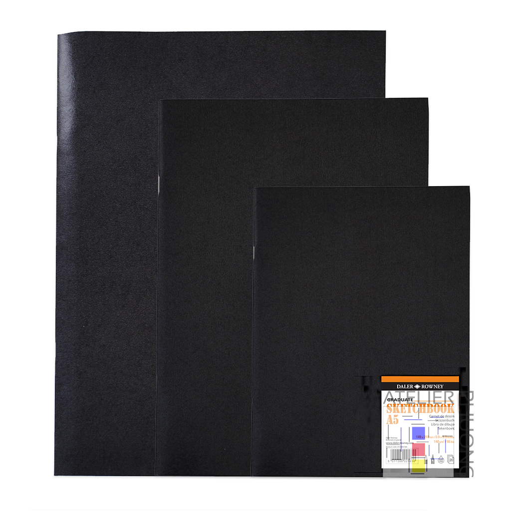 Le Carnet de dessin Graduate de DALER ROWNEY est agrafé avec couverture noire mate souple, est parfait pour les techniques sèches ainsi que le dessin à la plume grâce à son papier lisse sans acide.