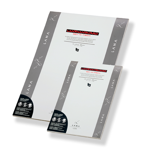 Le Bloc de papier Lanavanguard de LANA est un support multi-techniques révolutionnaire, ­parfaitement lisse et d’une extrême blancheur. Original, indéchirable et ultra-­résistant, les nuances et contrastes de vos couleurs seront exaltés par ce nouveau support. il reste plat quelle que soit la technique utilisée.