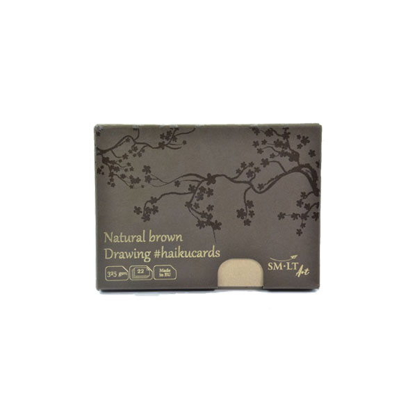 Les Cartes Haïku Dessin SM-LT Art sont proposé dans étui en carton 100% recyclé, s’ouvre et se ferme à volonté. La carte est de 14,7×10,6 cm. Son papier d’un brun naturel, 100% recyclé est de 325 g/m2.