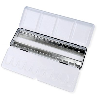 La Boîte aquarelle en métal vide de MANET est conçue pour le rangement et le transport de l’aquarelle. Elle est compatible avec toutes les marques de peinture aquarelle. Le double couvercle de la boîte permet le déploiement de deux palettes.