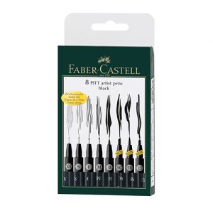FABER CASTELL – Set de 8 feutres Pitt Artist Pen Noir