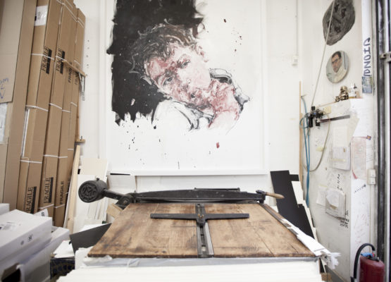 Dan, très proche des artistes, est devenu assistant de Robert Combas et d’Erró, maîtrise parfaitement le marouflage.